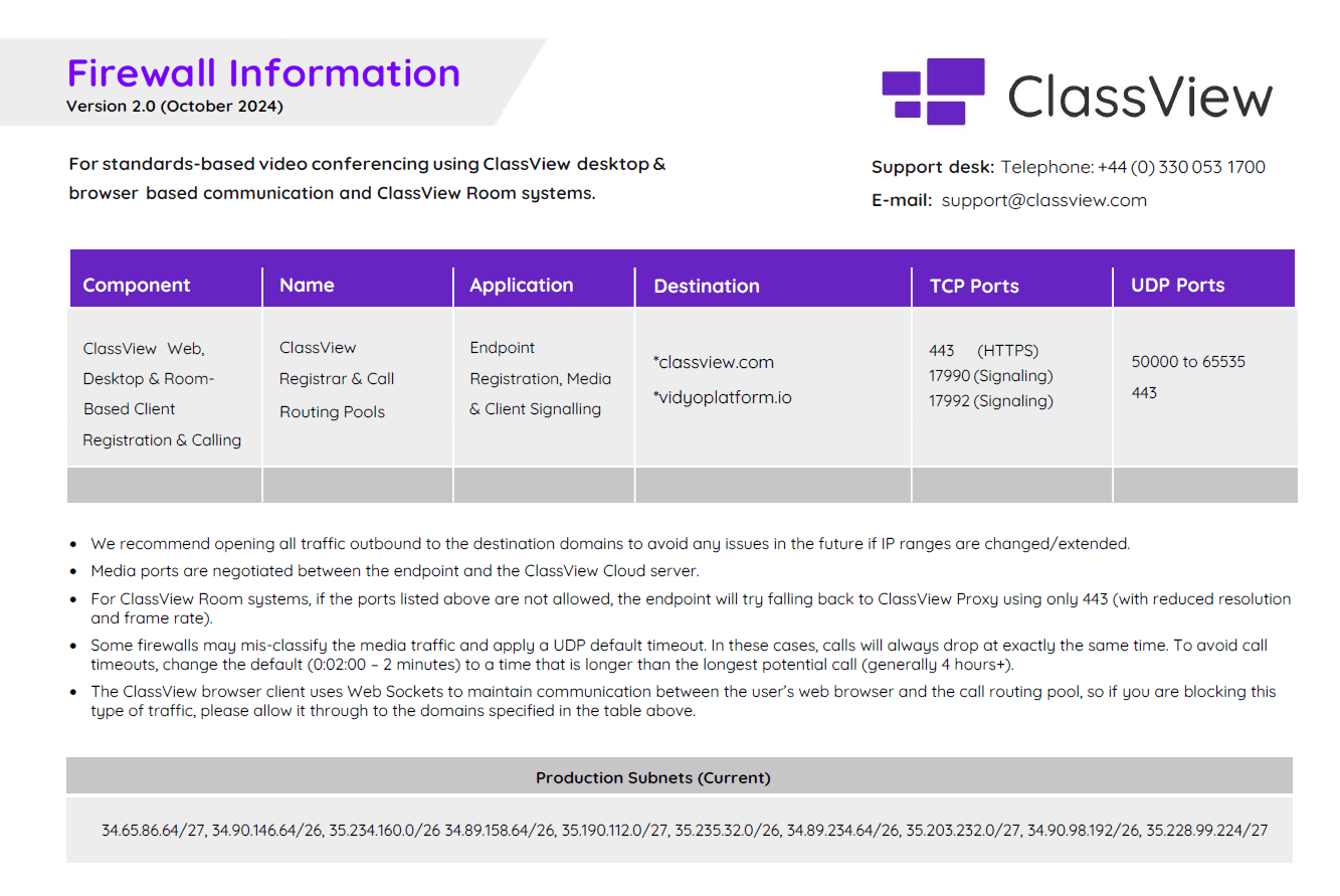 - ClassView Firewall Requirements