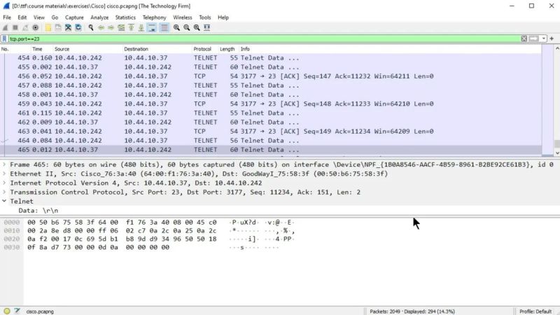 - wireshark class telnet